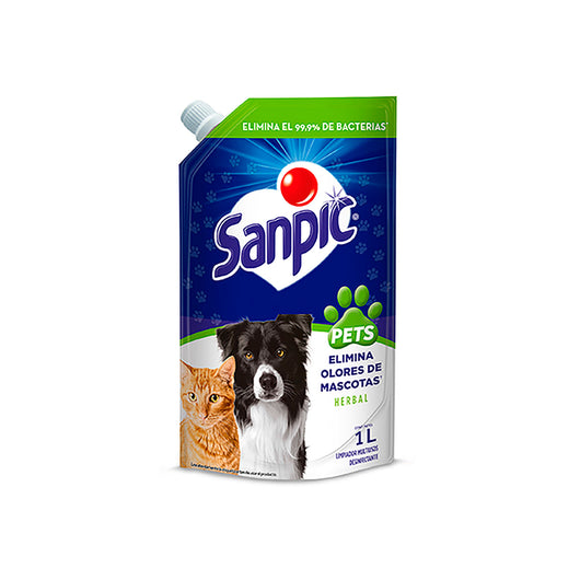 Sanpic herbal es un limpiador amigable que desinfecta y elimina los malos olores producidos por las mascotas, ideal para espacios domésticos, patios traseros y zonas de mascotas.