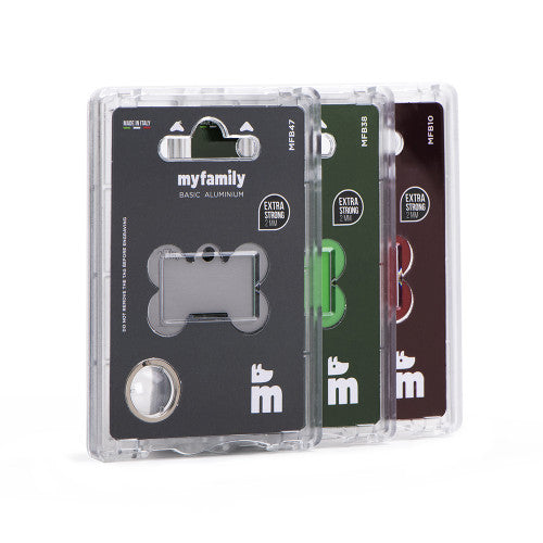Cuando la simplicidad se une a la precisión nacen productos únicos de verdad. Las placas de la colección Basic son un ejemplo de pureza y elegancia. Disponibles en latón cromado, latón dorado y aluminio anodizado, duran más que nunca gracias a la nueva versión extra fuerte. ¡Hay más! Para los perros de tamaño grande están disponibles las placas Basic XL. Grandes de formato y de calidad. Made in Italy