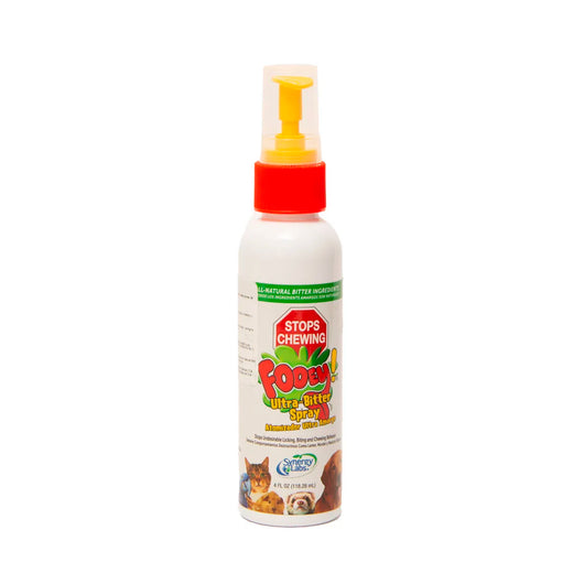 Repelente para Perros Fooey Modificador de la conducta de perros y gatos. Detiene el comportamiento destructivo como lamer, morder y masticar objetos, detiene el comportamiento peligroso y destructivo. Fórmula completamente segura y eficaz puede ser rociado sobre cualquier cosa y al instante se transforman en un objeto totalmente desagradable para la mascota.